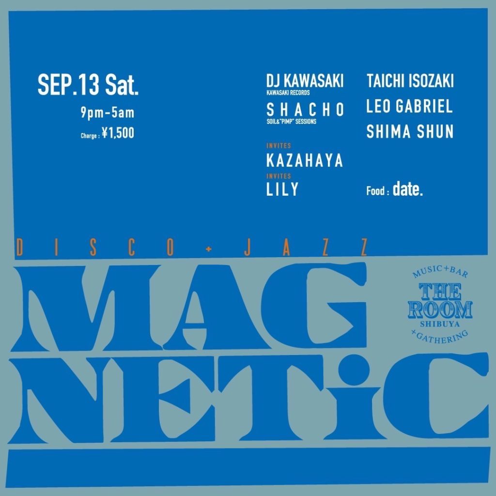 [GUEST DJ] KAZAHAYA Lily [DJ] DJ KAWASAKI (KAWASAKI RECORDS) SHACHO (SOIL&"PIMP"SESSIONS) TAICHI ISOZAKI LEO GABRIEL SHIMA SHUN [FOOD] date.