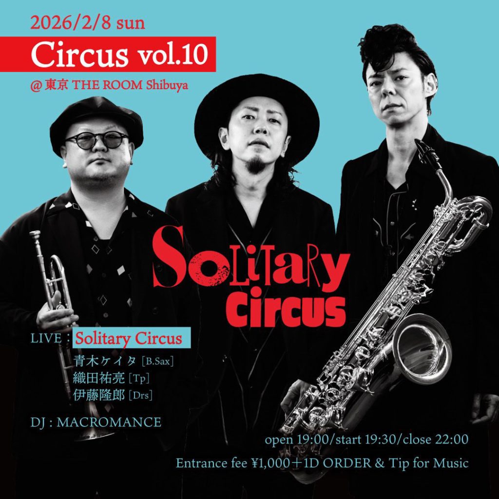 [LIVE] "Solitary Circus" 青木ケイタ(B.Sax) 織田祐亮(Tp) 伊藤隆郎(Drs) [DJ] MACROMANCE